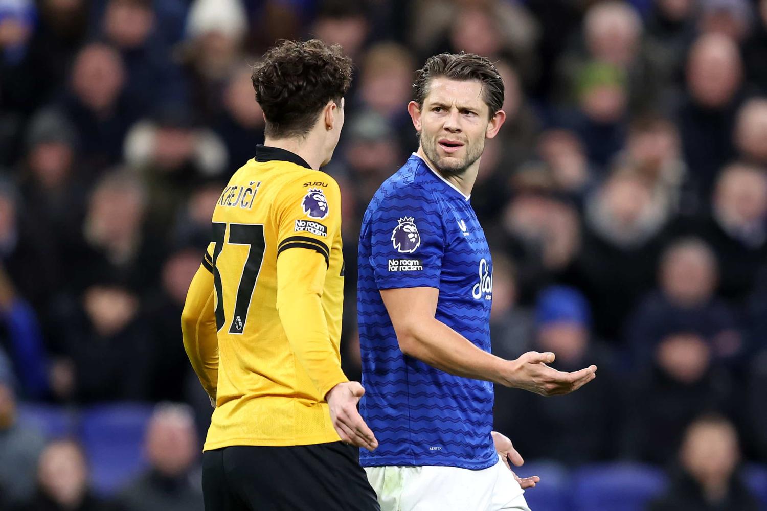 James Tarkowski believes that the referee’s decision to show Michael Keane a red card was “bizarre” and that his teammate had his arm raised in a routine defensive action.