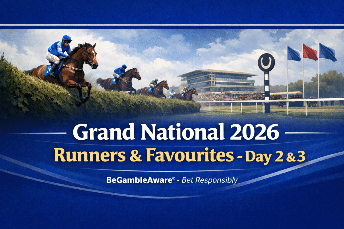 New customers only. Promotion applies to the first deposit made using code GRAND2026. Min. deposit £20. Min. qualifying bet £20 on Horse Racing (HR) at min odds 1/1 (2.0). Cash‑out not permitted. Bonus Bets (BB) valid on HR only. BB are issued as 1×£6 BB, followed by 3×£8 BB after the initial BB is used and settled. BB stake not returned. BB expiration – 7 days. Each BB max winnings £200. One per customer. Offer ends 11/04/2026. General T&Cs apply. BeGambleAware.org. 18+