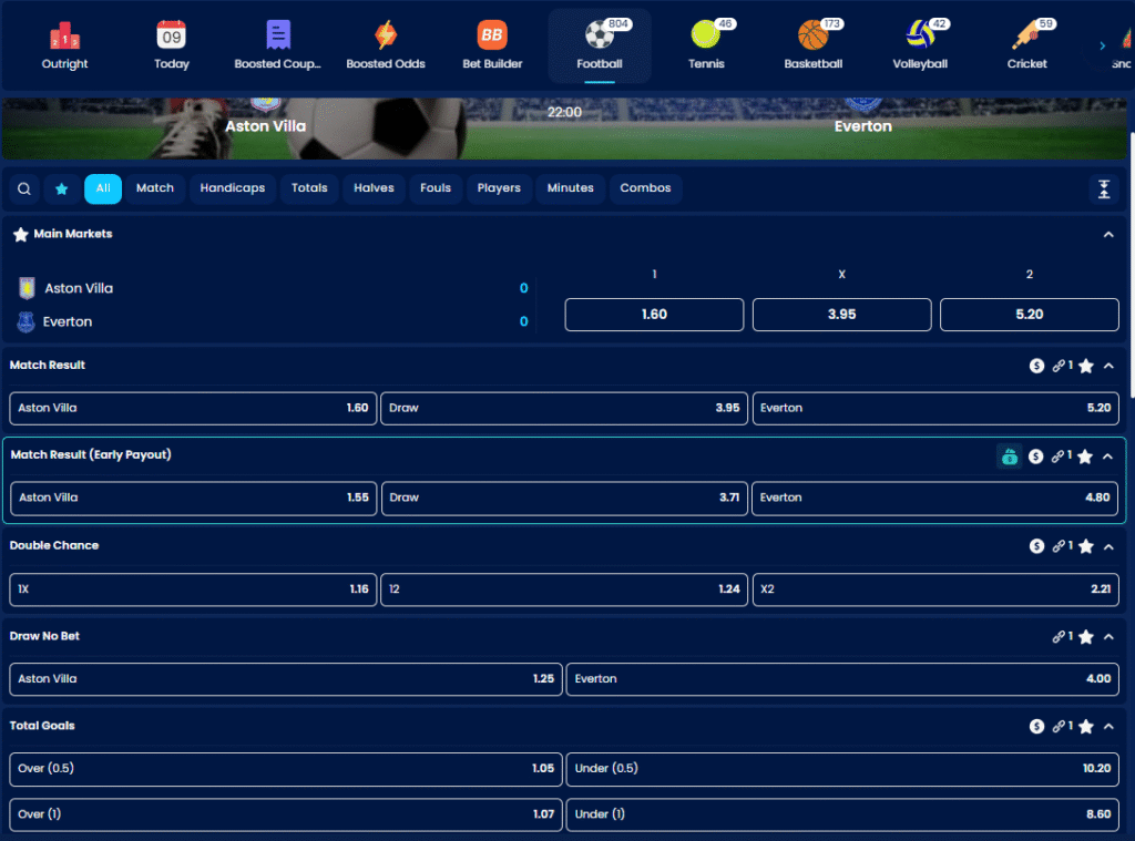 Everton fans will be able to use the Football ACCA Free Bet on their favourite team for basically every single Premier League and FA Cup matchup. You won’t be able to use the Free Bet on a Bet Builder however, so you will need to parlay at least 4 different selections together from different matches.