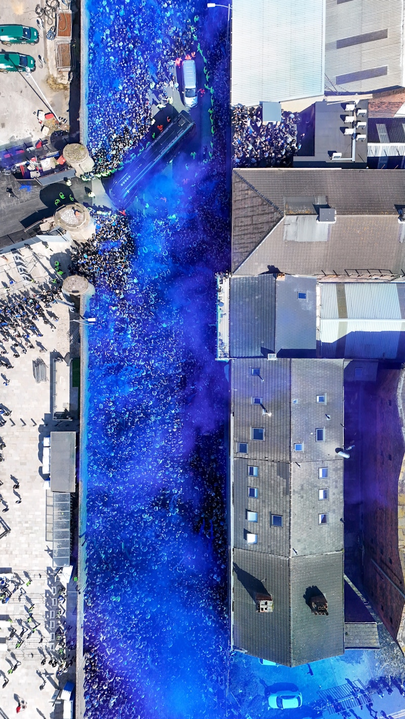 Regent Road is packed to the walls with Blues welcoming the team coach in a blaze of blue flares amidst the wonderful spring sunshine on this hugely auspicious day for Everton and the Hill Dickinson Stadium.