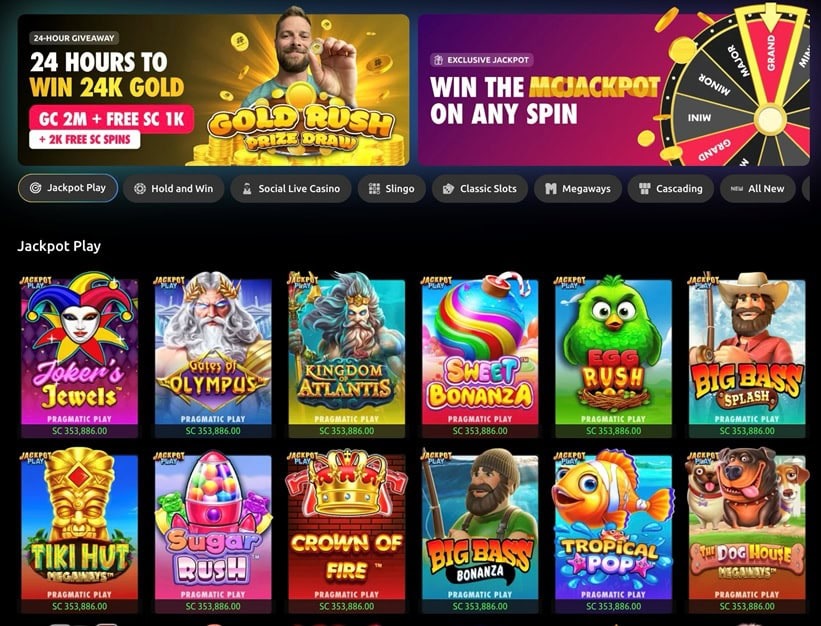 - Diverse categories: Slots, jackpots, Slingo, and instant-win games dominate, with many exclusive titles such as Crown’s Jewels or McJackpot Slots.