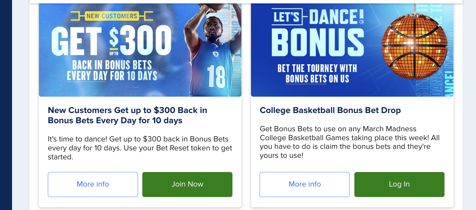 | Mar 2026 | Upto $300 Bonus Bets(if your bet wins) | Current offer confirmed, no code needed |
